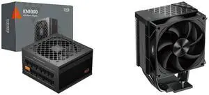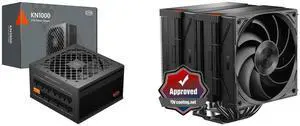 PCCOOLER CPS KN1000 Fully Modular Power Supply, 80 PLUS Gold 1000W PSU, Native 12V-2x6 Connector, ATX 3.1 & PCIe 5.1 Ready, Dual CPU Power Cables, 105°C Rated Japanese Capacitors, P3-KN1000-G1F and PCCOOLER CPS RZ620 Dual Tower CPU Air Cooler, 6 Heat Pipes, 275W TDP, Aluminum Top Cover, 157.5mm Tall, 120mm PWM Silent Fans w/ 3 Modes, for Intel LGA 1851/1700/1200/115X & AMD AM5/AM4, Black