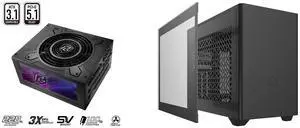 ASRock Phantom Gaming PG-850G 850W 80 PLUS GOLD & Cybenetics PLATINUM Full Modular Power Supply, ATX3.1 & PCIe5.1 Ready with Dual Color 12V-2x6 Cable, 10 Years Warranty Cooler Master NR200 Mini-ITX PC Case - 280mm Radiator Support, Fits up