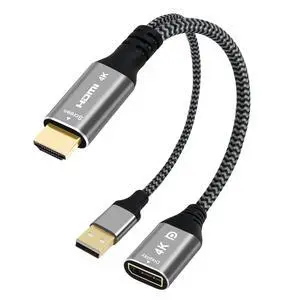 4K HDMI to DisplayPort Adapter with USB Powered, Uni-Directional HDMI Male (Source) to DP Female (Screen), 4K@60Hz, Nylon Braided Converter Connector, Compatible with Xbox One, PS4, PS5, AMD - 0.6 FT