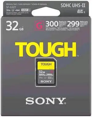 Sony Tough High Performance 32GB SDXC UHS-II Class 10 U3 Flash Memory Card with Blazing Fast Read Speed up to 300MB/s (S