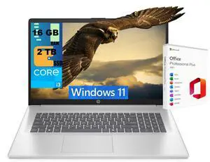 HP 17 Laptop, 17.3" HD+ (1600 x 900) Display, Intel Core i3-N305 8 Cores Processor, Intel UHD Graphics, 16GB DDR4 2TB PCIe SSD, Wi-Fi 6, Windows 11, Office 2021 License