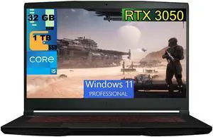 MSI GF63 Thin 15 Gaming Laptop, 15.6" FHD 144Hz, Intel Core i5-11400H 6 Cores Processor, NVIDIA GeForce RTX 3050 4GB GDDR6, 32GB DDR4 1TB PCIe SSD, Wi-Fi 6, Windows 11 Pro