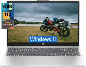 HP 15 Laptop, 15.6" HD (1366 x 768) Touchscreen, AMD Ryzen 5 7520U 4 Cores Processor, AMD Radeon Graphics, 8GB DDR4  1TB PCIe SSD, Bluetooth, Wi-Fi, Windows 11 Home