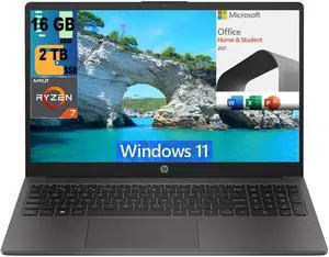 HP 255 G10 15 Laptop, 15.6" FHD Display, AMD Ryzen 7 7730U 8 Cores Processor, AMD Radeon Graphics, 16GB DDR4  2TB PCIe SSD, Webcam, Wi-Fi 6, Windows 11, Microsoft Office License