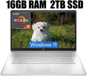 HP 17 Laptop, 17.3" FHD (1920 x 1080) Display, AMD Ryzen 5 5500U 6 Cores Processor, AMD Radeon Graphics, Webcam, HDMI, Wi-Fi, 16GB DDR4  2TB PCIe SSD, Windows 11