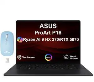 ASUS ProArt P16 AI Powered Laptop 16.0" Touchscreen OLED 2.8K Display (AMD Ryzen AI 9 HX 370, 32GB LPDDR5X, 4TB PCIe SSD, GeForce RTX 5070, Backlit KB, WiFi 7, Win 11 Pro) w/Dockztorm Wireless Mouse