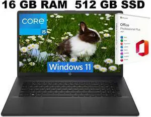HP 17 Laptop, 17.3" HD+ (1600x900) Display, Intel Core i5-1334U 10 Cores Processor, Intel Iris Xe Graphics, 16GB DDR4 512GB PCIe SSD, Wi-Fi 6 and Bluetooth 5.3, Windows 11 ,Office 2021 License