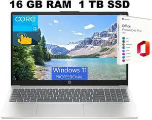 HP 15 Laptop, 15.6" HD (1366 x 768) Touchscreen, Intel Core i3-1315U 6 cores processor, Intel UHD Graphics, 16GB DDR4 1TB PCIe SSD, Wi-Fi 6E, Windows 11 Pro ,Office 2021 License