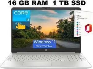 HP 15 Laptop, 15.6" HD Touchscreen, Intel Core i3-1215U 6 cores Processor, Intel UHD Graphics, 16GB DDR4 1TB PCIe SSD, Wi-Fi and Bluetooth, Windows 11 Pro, Office 2021 License