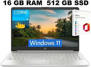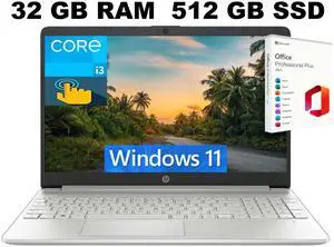 HP 15 Laptop, 15.6" HD Touchscreen, Intel Core i3-1215U 6 cores Processor, Intel UHD Graphics, 32GB DDR4 512GB PCIe SSD, Wi-Fi and Bluetooth, Windows 11, Office 2021 License