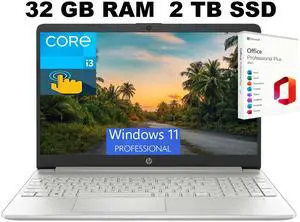 HP 15 Laptop, 15.6" HD Touchscreen, Intel Core i3-1215U 6 cores Processor, Intel UHD Graphics, 32GB DDR4 2TB PCIe SSD, Wi-Fi and Bluetooth, Windows 11 Pro, Office 2021 License