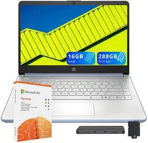 HP Stream 14" HD Lightweight Laptop, Intel Celeron N4120, 8GB RAM, 224GB Storage(64GB eMMC + 160GB Docking Station), Intel UHD Graphics, HD Webcam, 1 Year Office 365, WiFi, Bluetooth, Win 11s, White