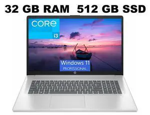 HP 17 Laptop, 17.3" FHD (1920 x 1080) Display, Intel Core i3-N305 8 Cores Processor, Intel UHD Graphics, 32GB DDR4 512GB PCIe SSD, Webcam, HDMI, Fingerprint Reader, Windows 11 Pro