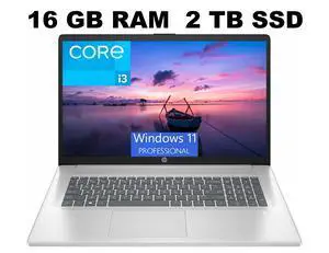HP 17 Laptop, 17.3" FHD (1920 x 1080) Display, Intel Core i3-N305 8 Cores Processor, Intel UHD Graphics, 16GB DDR4 2TB PCIe SSD, Webcam, HDMI, Fingerprint Reader, Windows 11 Pro
