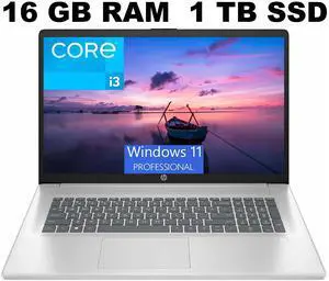 HP 17 Laptop, 17.3" FHD (1920 x 1080) Display, Intel Core i3-N305 8 Cores Processor, Intel UHD Graphics, 16GB DDR4 1TB PCIe SSD, Webcam, HDMI, Fingerprint Reader, Windows 11 Pro