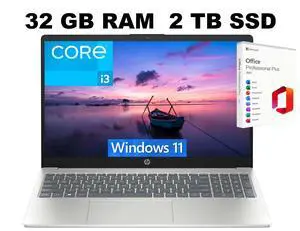 HP 15 Laptop, 15.6" FHD (1920 x 1080) Display, Intel Core i3-N305 8 Cores Processor, Intel UHD Graphics, 32GB DDR4 2TB PCIe SSD, Wi-Fi 6 - Bluetooth 5.3, Windows 11 ,Office 2021 License