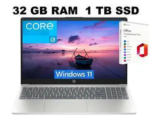 HP 15 Laptop, 15.6" FHD (1920 x 1080) Display, Intel Core i3-N305 8 Cores Processor, Intel UHD Graphics, 32GB DDR4 1TB PCIe SSD, Wi-Fi 6 - Bluetooth 5.3, Windows 11 ,Office 2021 License