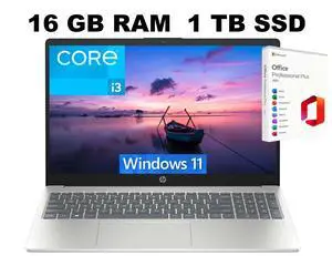 HP 15 Laptop, 15.6" FHD (1920 x 1080) Display, Intel Core i3-N305 8 Cores Processor, Intel UHD Graphics, 16GB DDR4 1TB PCIe SSD, Wi-Fi 6 - Bluetooth 5.3, Windows 11 ,Office 2021 License