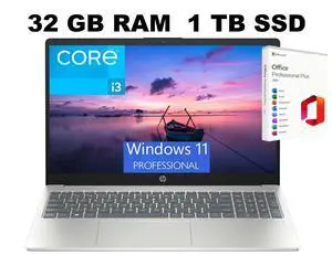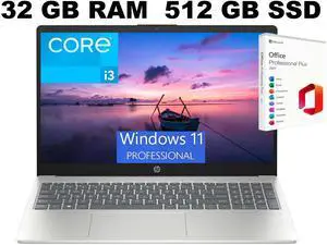 HP 15 Laptop, 15.6" FHD (1920 x 1080) Display, Intel Core i3-N305 8 Cores Processor, Intel UHD Graphics, 32GB DDR4 512GB PCIe SSD, Wi-Fi 6 - Bluetooth 5.3, Windows 11 Pro ,Office 2021 License