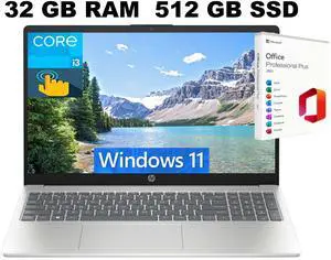 HP 15 Laptop, 15.6" HD (1366 x 768) Touchscreen, Intel Core i3-1315U 6 cores processor, Intel UHD Graphics, 32GB DDR4 512GB PCIe SSD, Wi-Fi 6E, Windows 11 ,Office 2021 License