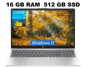 HP 15 Laptop, 15.6" HD (1366 x 768) Touchscreen, Intel Core i3-1315U 6 cores processor, Intel UHD Graphics, 16GB DDR4 512GB PCIe SSD, Wi-Fi 6E, Business & Student, Copilot, Windows 11 Pro