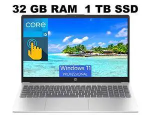 HP 15 Laptop, 15.6" HD (1366 x 768) Touchscreen, Intel Core i5-1235U 10 Cores Processor, Intel Iris Xe Graphics, 32GB DDR4  1TB PCIe SSD, Bluetooth, Wi-Fi, Windows 11 Pro