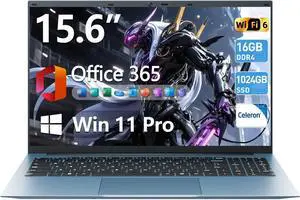 Naclud 15.6 Inch Laptop Computer, Windows 11 Laptops with 16GB RAM 1024GB SSD, Celeron N5100, Office 365, IPS FHD, WiFi 6, 53.2WH Battery, 180 Viewing, HDMI, Cooling Fan, for Business and Students