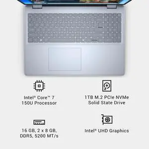 Dell 16 Laptop DC16251 - 16-inch FHD+ Touchscreen, Intel Core 7-150U, 16GB RAM, 1TB SSD, Ice Blue