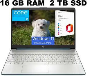 HP 15 Laptop, 15.6" HD Display, Intel Core i3-1115G4 2 Cores Processor, Intel UHD Graphics, 16GB DDR4 2TB PCIe SSD, Wi-Fi, SD Card Reader, HDMI, Webcam, Windows 11 Pro ,Office 2024 License- Processor Name: 3.00GHz