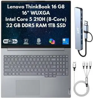 Lenovo ThinkBook 16 Gen 8 Business Laptop, 16" WUXGA, Intel Core 5 210H 8-Core (Beats i5-13420H), 32GB DDR5 RAM, 1TB (2X 512GB) SSD, FPReader, FHD Cam, RJ45, Wi-Fi 6E, Backlit Keyboard, W11P