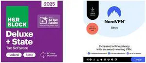 H&R Block Tax Software Deluxe + State 2025 PC/Mac [Download] Bundle Purchase Only NordVPN Basic, Premium VPN Service - 10 Devices /1 Year- Download