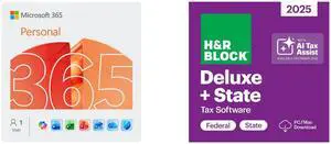 Microsoft 365 Personal | 12-Month Subscription, 1 person | Word, Excel, PowerPoint | 1TB OneDrive cloud storage | PC/Mac Instant Download H&R Block Tax Software Deluxe + State 2025 PC/Mac [Download] Bundle Purchase Only