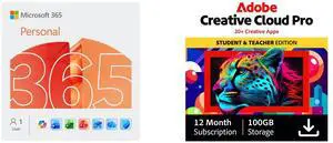 Microsoft 365 Personal | 12-Month Subscription, 1 person | Word, Excel, PowerPoint | 1TB OneDrive cloud storage | PC/Mac Instant Download Adobe Creative Cloud Pro | Student & Teacher Edition | 20+ creative apps plus 100GB Storage | 12-Month