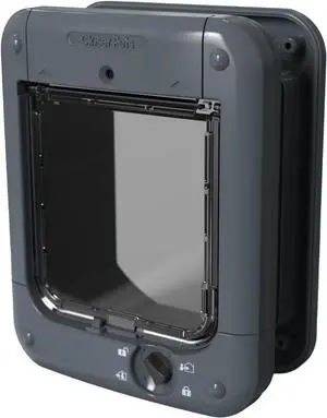 Microchip Activated Cat Door for Entry Control of up to 30 Cats - ISO and AVID Compatible (Grey) Gray One Size