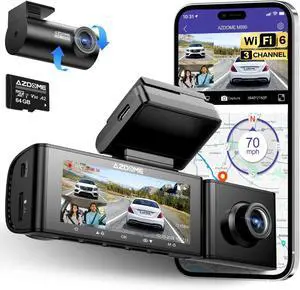 3 Channel WiFi 6 Dash Camera for Cars, 2.5K+1080P+1080P Dash Cam Front and Rear Inside, 64GB Card Included, 3.18" IPS Screen Car Camera with GPS, Parking Mode, IR Night Vision, WDR (M590)
