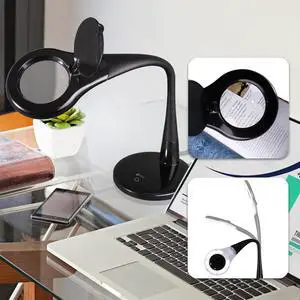 LED Desk Lamp with Adjustable Magnifier, Prevention Series - Designed to Reduce Eyestrain - Adjustable Flexible Neck, 4 Brightness Settings & Touch Controls - Crafting, Reading & Studying