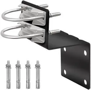 Antenna Mount Kit, Black-Coated Pole Mount Bracket with Double U-Bolts Clamp V Jaw Bracket for Outside Home Antenna Holder 1 Set