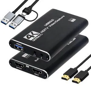 4K@60FPS Capture Card for Streaming & Recording, 1080P@240FPS, USB 3.0 HDMI Camera Video Capture, 4K60 Passthrough, 3.5mm Audio in & Mic Out, Works with Switch 2/1, PS5/4, Xbox, Pad, Mac, PC- Brand: Guermok