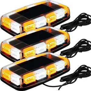 2pcs 48LED Roof Top Strobe Lights, High Visibility Emergency Safety Warning LED Mini Light bar with Magnetic Base for 12-24V Snow Plow, Trucks, Construction Vehicles (Amber/White) Amber/White -