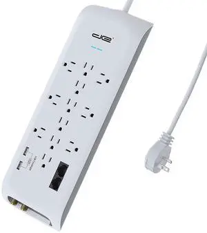 Digital Energy 12 Outlet 4200 Joules Surge Protector Power Strip with 2 USB (4.2A) Ports 6 Foot 14/3 AWG Cord Coax/Phone/Ethernet Protection 6 Wide Spaced Outlets White