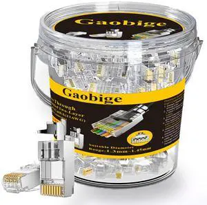 Cat6/6A RJ45 Pass Through Modular Plugs, Shielded (STP) External Ground Connector, UL Listed, EZ Crimp, Gold Plated 3 Prong 8P8C, 100 Pieces