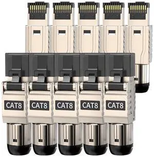 10-Pack RJ45 Connectors Tool Free Cat 8, Cat8 Field Termination Plug Shielded RJ45 Modular Plugs for 2000MHz 2GHz 40G Double Shielded Solid LAN C 22AWG-24AWG