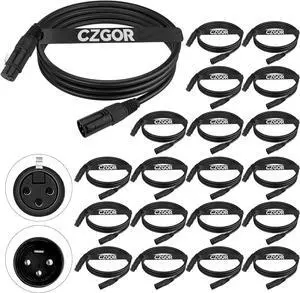 DMX Cable 6.5 ft, 20 Pack Flexible 3 Pin Signal XLR Male to Female DMX Cable Wire, Suitable for Stage Lighting Signal DMX512 Connection Stage Light Cables for Stage Lighting Input & Output