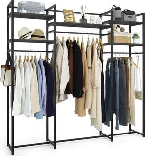 913lbs Capacity Garment Rack for Hanging Clothes, Heavy Duty Open Wardrobe w/Hanging Rods, Free Standing Closet Organizer, Clothing Rack, Metal Closet w/Wooden Boards, Black Vintage Board