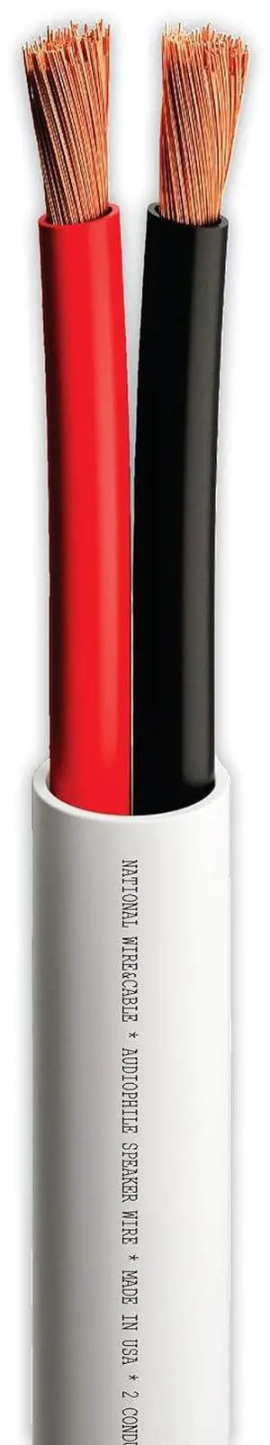 Speaker Cable, White, Pure Copper, CM / Inwall rated, 16 / 2 (16 AWG 2 Conductor), 65 Strand / 0.16mm, Spool, 50 foot
