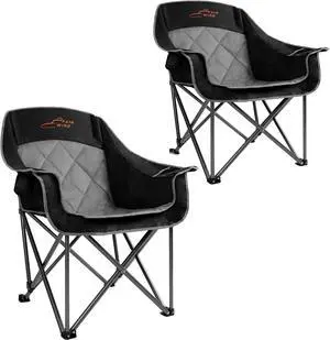 2 Pack Oversized Padded Camping Chair Heavy Duty Quad Fold Arm Chair Portable for Outdoor - Support 450LBS, Black