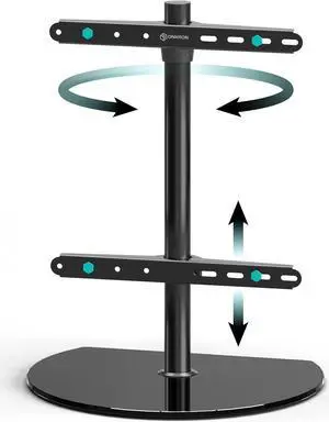 TAVR Universal Floor TV Stand Base for 32-75 Inch TVs up to 110 Lbs with Swivel Height Adjustable Mount, Black Tempered Glass Base for Media Storage and Space Saving