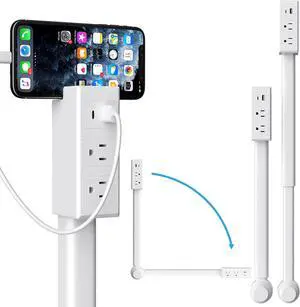 Outlet Extender Stick with Phone Holder, Retract 27.5in Arm, 2 AC Outlets, USB-C & USB-A Charging Ports, 180° Rotating Plug Wall Power Extender for Bede, Dorm, Office