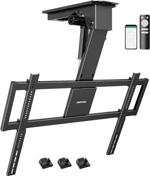 monTEK Motorized Ceiling TV Mount for 43-86 Inch TVs, Heavy-Duty 121lbs (4X Load Tested), Off-Center VESA Compatible, Electric Flip Down with Remote/App/Voice Control, Fits Flat & Pitched Roof