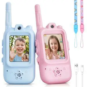 Video Walkie Talkies for Kids - 2 Pack Long Range Walkie Talkie Rechargeable Video Intercom 2 Way Radio for Age 3-12 Boys Girls for Indoor Outdoor Camping (Pink&Blue)